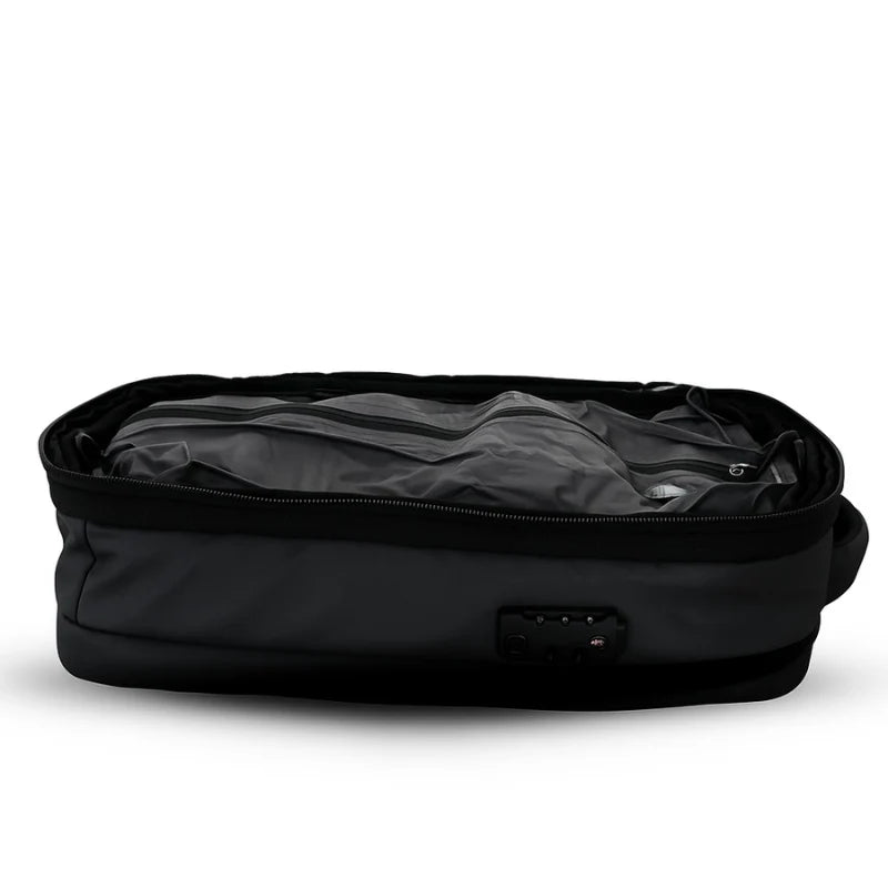 The AIRBAG travel backpack features an integrated vacuum system that reduces the volume of your belongings, maximizing storage space. Use the mini pump, a vacuum cleaner, or simply your hands to compress your clothes. No more sorting or overstuffing your bag: take everything you need—and more—without compromise!